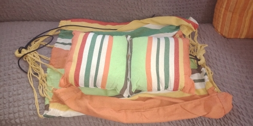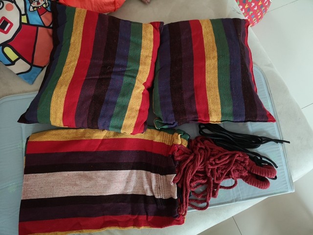 El kit incluye: un columpio, 2 almohadas y 2 cuerdas (hay que pensar en cómo colgarla).