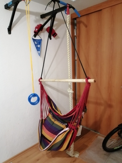 Me costó un poco encontrar por casa un palo fuerte para la hamaca. A mi hija le encanta. Gracias