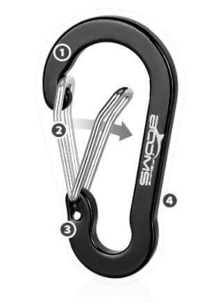 Estos ligeros  mosquetones son muy resistentes y se puede colgar rápidamente en cualquier mochila, prenda de vestir, vehículo o aparejo.