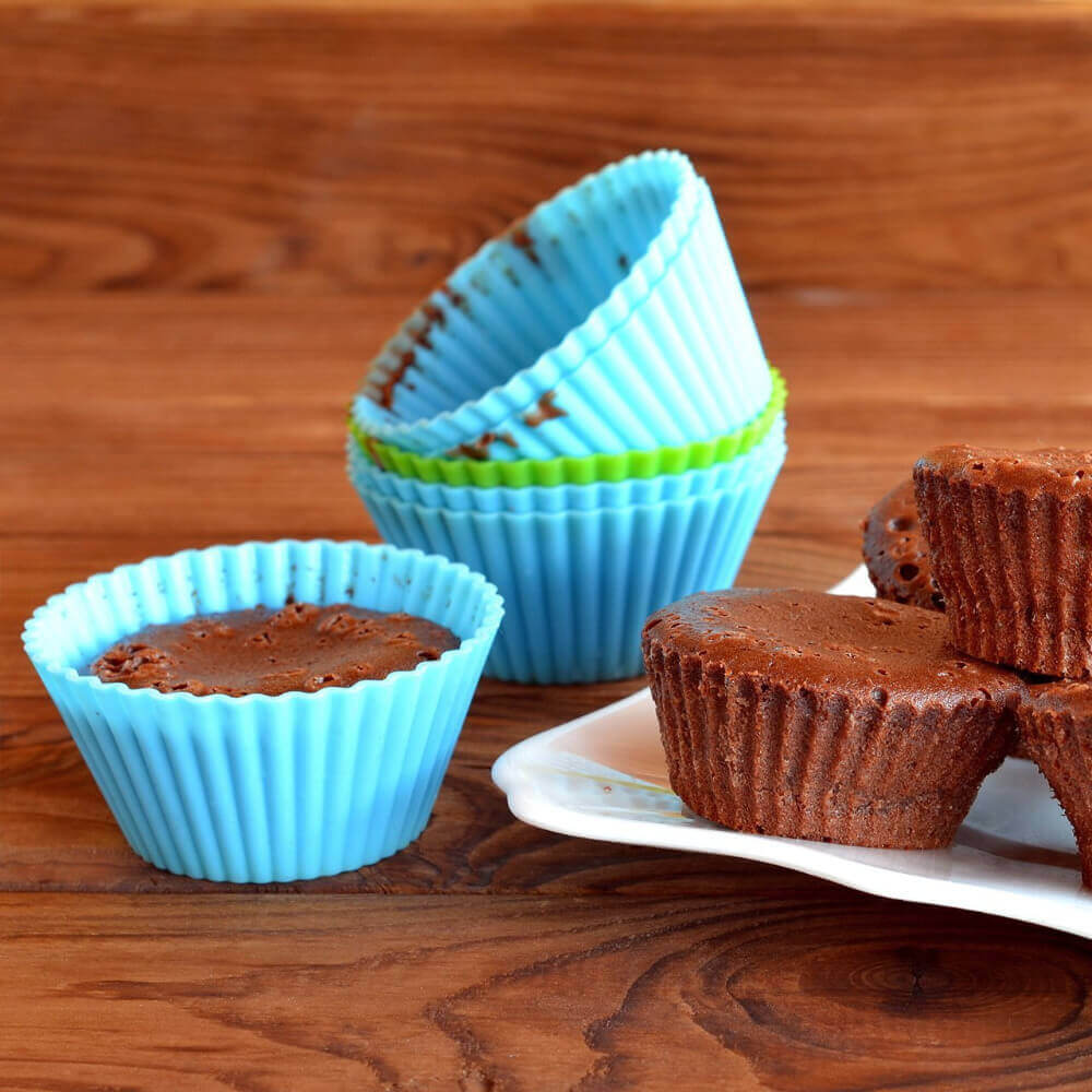 – Fáciles de limpiar: Con función anti-adherente, son implacables y resistentes a los olores. Estos moldes de silicona para magdalenas son muy fáciles de limpiar.